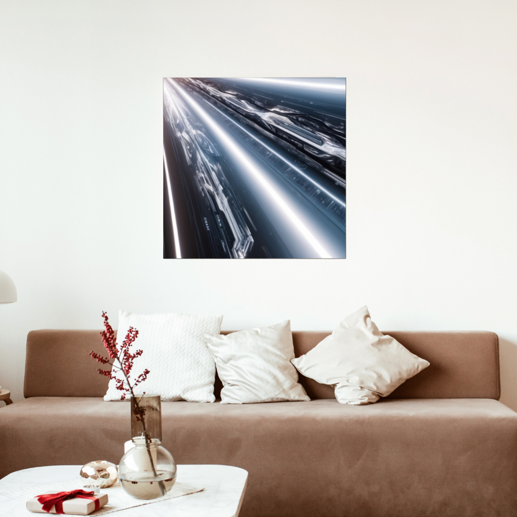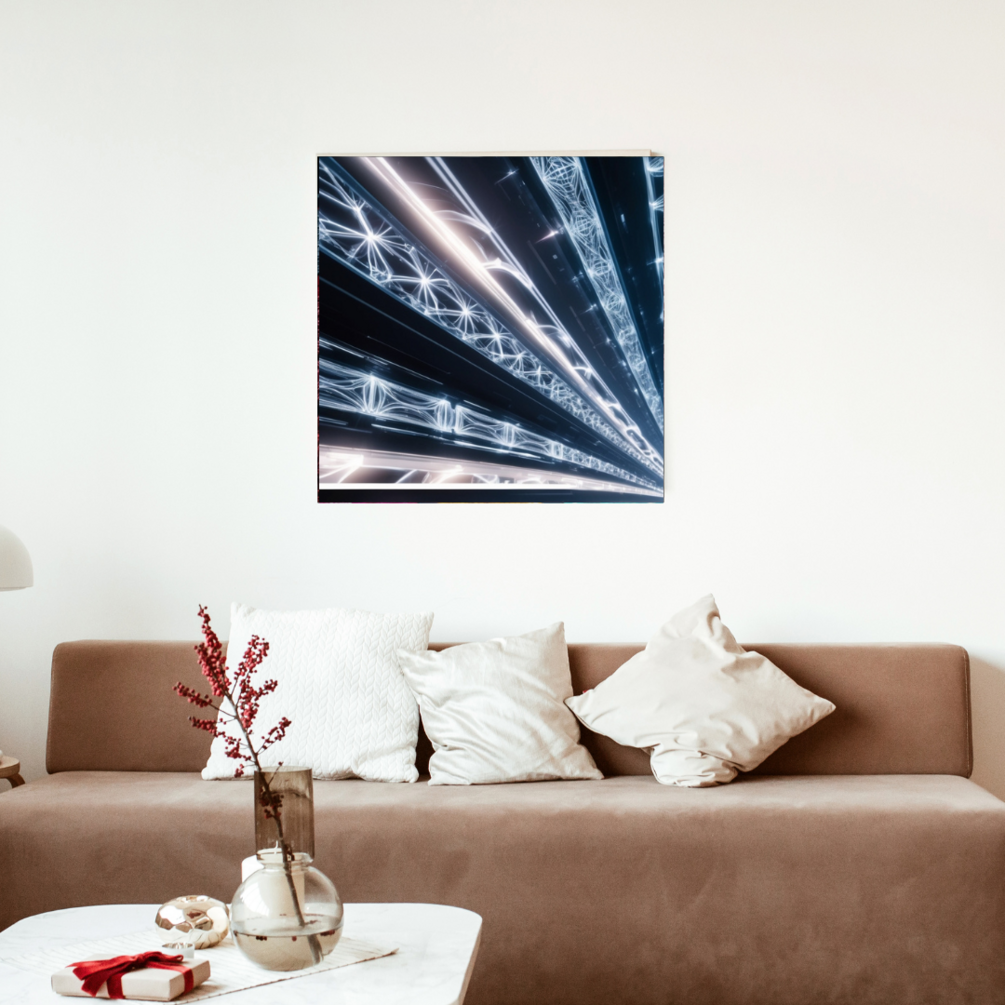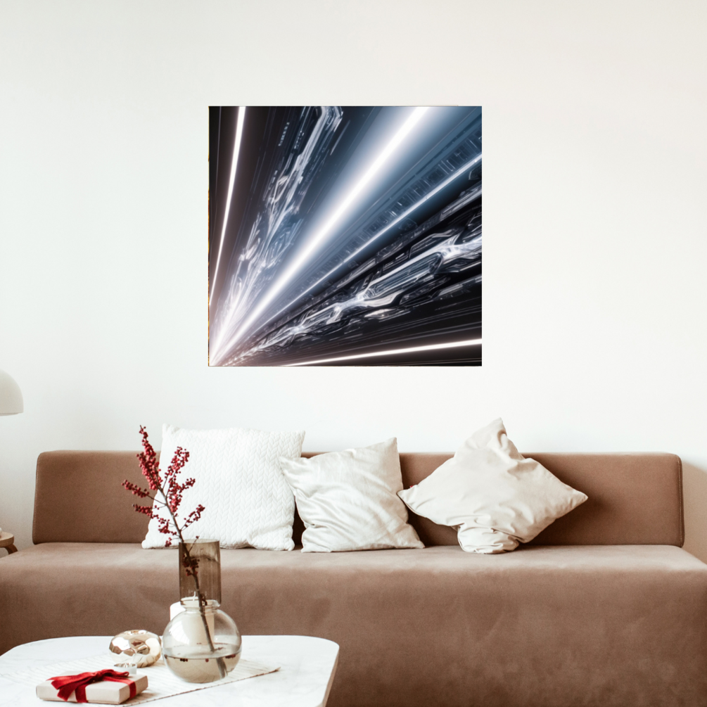 Elevate your space with the futuristic and captivating beauty of symmetric light rays rendered in a dynamic virtual reality style. This art bundle is perfect for creating an immersive and modern ambiance in any room.